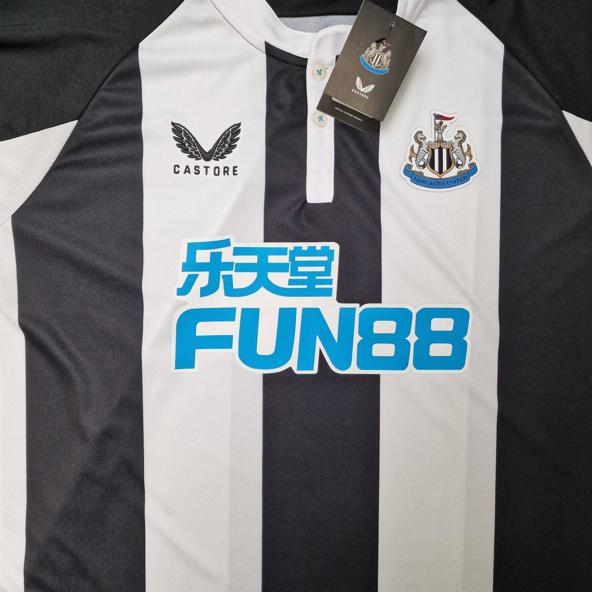 Newcastle United 2021/2022 home football shirt made by Castore with the Fun88 Sponsor.