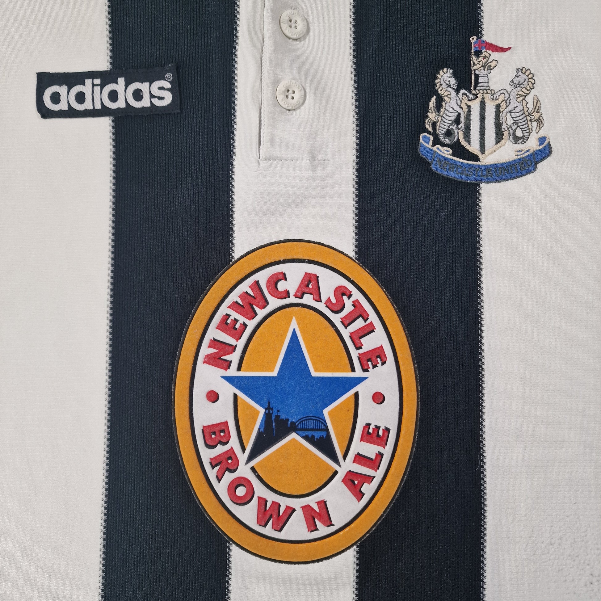 Newcastle United 1995/1997 home football shirt made by Adidas with the iconic Newcastle Brown Ale sponsor.